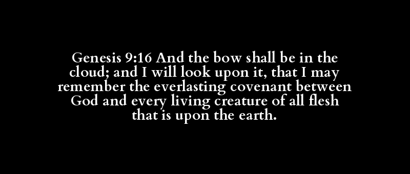 Genesis 9:16 And the bow shall be in the cloud; and I will look upon it, that I may remember the everlasting covenant between God and every living creature of all flesh that is upon the earth.
