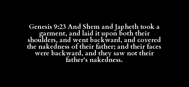 Genesis 9:23 And Shem and Japheth took a garment, and laid it upon both their shoulders, and went backward, and covered the nakedness of their father; and their faces were backward, and they saw not their father's nakedness.