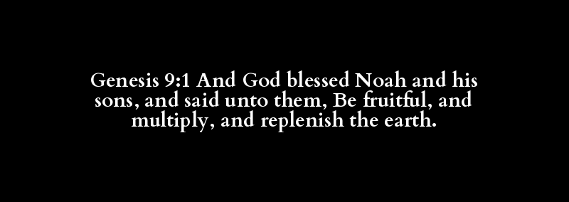 Genesis 9:1 And God blessed Noah and his sons, and said unto them, Be fruitful, and multiply, and replenish the earth.