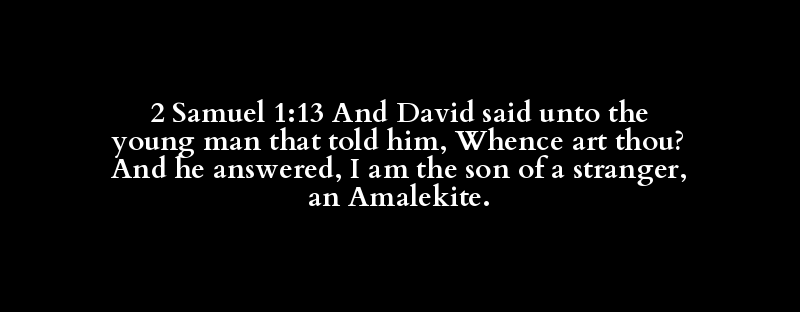 2 Samuel 1:13 And David said unto the young man that told him, Whence art thou? And he answered, I am the son of a stranger, an Amalekite.