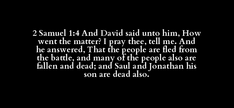 2 Samuel 1:4 And David said unto him, How went the matter? I pray thee, tell me. And he answered, That the people are fled from the battle, and many of the people also are fallen and dead; and Saul and Jonathan his son are dead also.