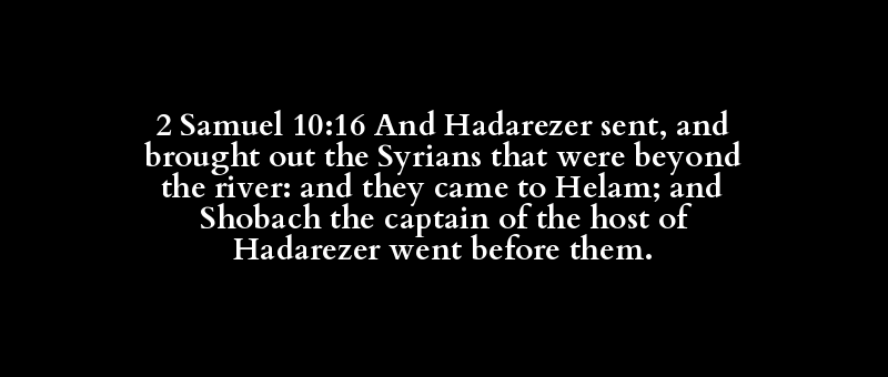 2 Samuel 10:16 And Hadarezer sent, and brought out the Syrians that were beyond the river: and they came to Helam; and Shobach the captain of the host of Hadarezer went before them.