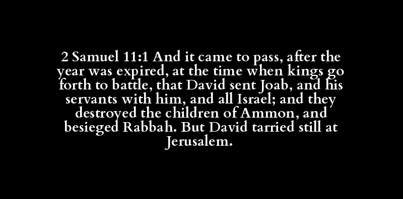 2 Samuel 11:1 And it came to pass, after the year was expired, at the time when kings go forth to battle, that David sent Joab, and his servants with him, and all Israel; and they destroyed the children of Ammon, and besieged Rabbah. But David tarried still at Jerusalem.