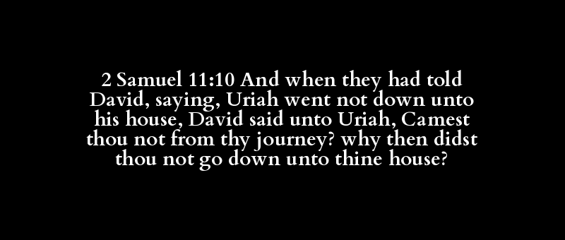 2 Samuel 11:10 And when they had told David, saying, Uriah went not down unto his house, David said unto Uriah, Camest thou not from thy journey? why then didst thou not go down unto thine house?