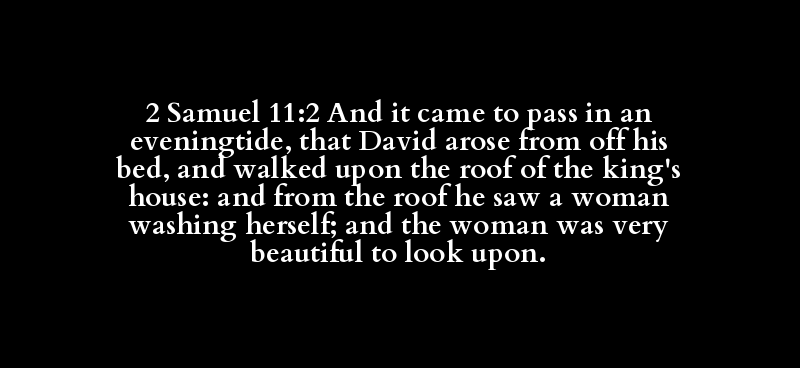 2 Samuel 11:2 And it came to pass in an eveningtide, that David arose from off his bed, and walked upon the roof of the king's house: and from the roof he saw a woman washing herself; and the woman was very beautiful to look upon.