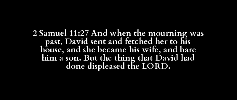 2 Samuel 11:27 And when the mourning was past, David sent and fetched her to his house, and she became his wife, and bare him a son. But the thing that David had done displeased the LORD.