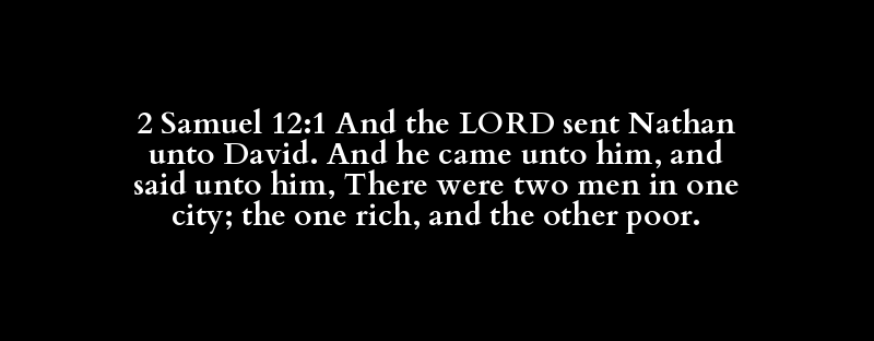 2 Samuel 12:1 And the LORD sent Nathan unto David. And he came unto him, and said unto him, There were two men in one city; the one rich, and the other poor.