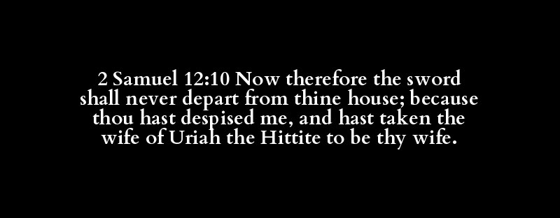 2 Samuel 12:10 Now therefore the sword shall never depart from thine house; because thou hast despised me, and hast taken the wife of Uriah the Hittite to be thy wife.