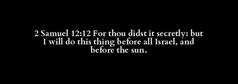 2 Samuel 12:12 For thou didst it secretly: but I will do this thing before all Israel, and before the sun.