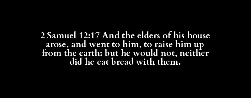 2 Samuel 12:17 And the elders of his house arose, and went to him, to raise him up from the earth: but he would not, neither did he eat bread with them.