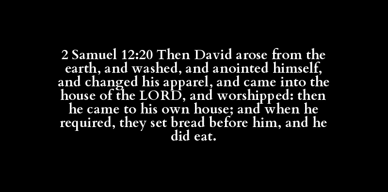2 Samuel 12:20 Then David arose from the earth, and washed, and anointed himself, and changed his apparel, and came into the house of the LORD, and worshipped: then he came to his own house; and when he required, they set bread before him, and he did eat.