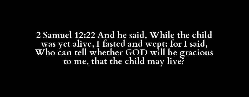 2 Samuel 12:22 And he said, While the child was yet alive, I fasted and wept: for I said, Who can tell whether GOD will be gracious to me, that the child may live?