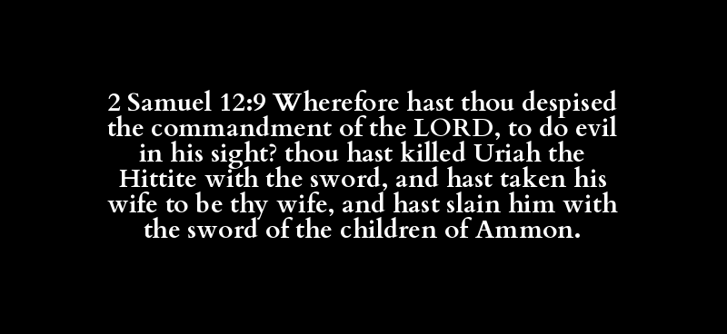 2 Samuel 12:9 Wherefore hast thou despised the commandment of the LORD, to do evil in his sight? thou hast killed Uriah the Hittite with the sword, and hast taken his wife to be thy wife, and hast slain him with the sword of the children of Ammon.