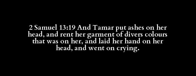 2 Samuel 13:19 And Tamar put ashes on her head, and rent her garment of divers colours that was on her, and laid her hand on her head, and went on crying.