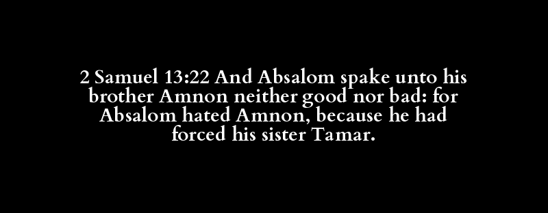 2 Samuel 13:22 And Absalom spake unto his brother Amnon neither good nor bad: for Absalom hated Amnon, because he had forced his sister Tamar.