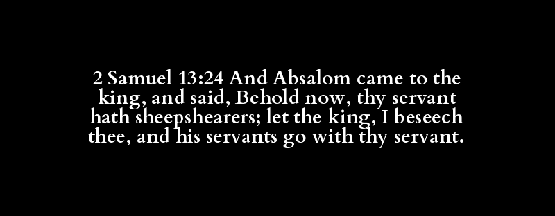 2 Samuel 13:24 And Absalom came to the king, and said, Behold now, thy servant hath sheepshearers; let the king, I beseech thee, and his servants go with thy servant.