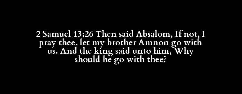 2 Samuel 13:26 Then said Absalom, If not, I pray thee, let my brother Amnon go with us. And the king said unto him, Why should he go with thee?