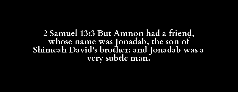 2 Samuel 13:3 But Amnon had a friend, whose name was Jonadab, the son of Shimeah David's brother: and Jonadab was a very subtle man.