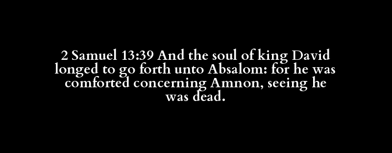 2 Samuel 13:39 And the soul of king David longed to go forth unto Absalom: for he was comforted concerning Amnon, seeing he was dead.