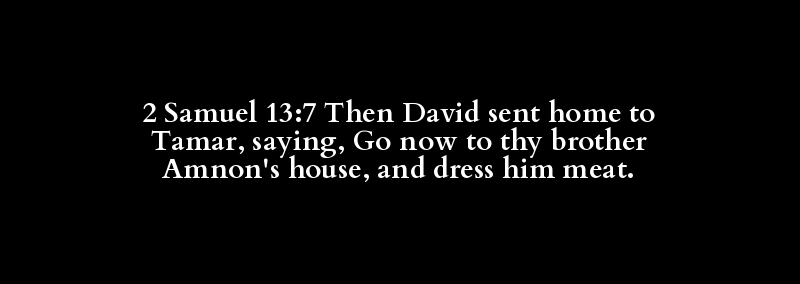 2 Samuel 13:7 Then David sent home to Tamar, saying, Go now to thy brother Amnon's house, and dress him meat.
