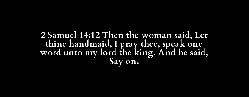 2 Samuel 14:12 Then the woman said, Let thine handmaid, I pray thee, speak one word unto my lord the king. And he said, Say on.