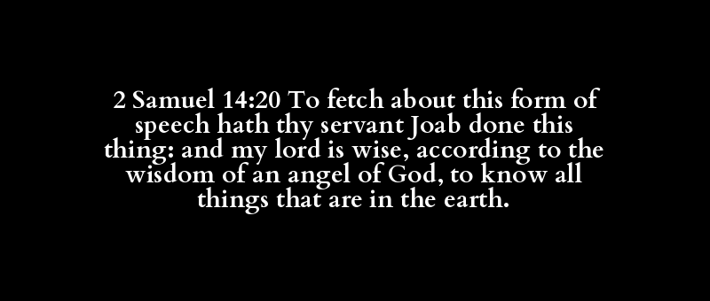 2 Samuel 14:20 To fetch about this form of speech hath thy servant Joab done this thing: and my lord is wise, according to the wisdom of an angel of God, to know all things that are in the earth.