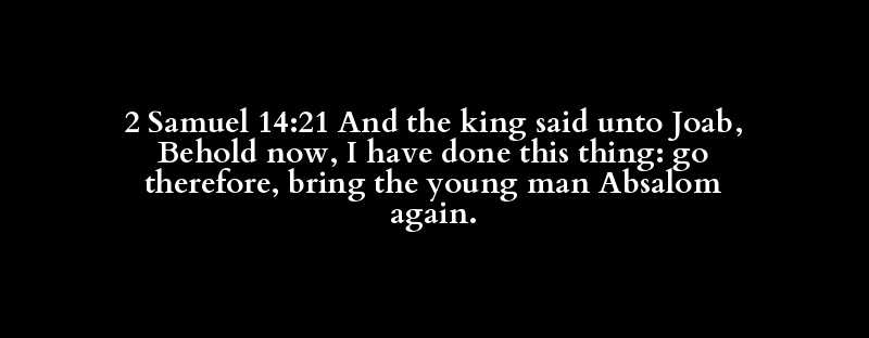 2 Samuel 14:21 And the king said unto Joab, Behold now, I have done this thing: go therefore, bring the young man Absalom again.