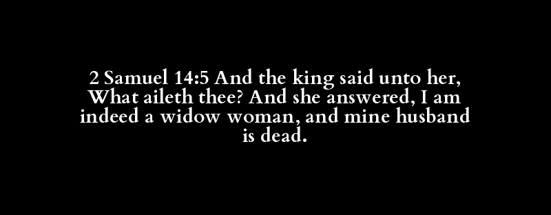 2 Samuel 14:5 And the king said unto her, What aileth thee? And she answered, I am indeed a widow woman, and mine husband is dead.