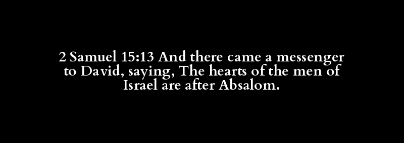 2 Samuel 15:13 And there came a messenger to David, saying, The hearts of the men of Israel are after Absalom.