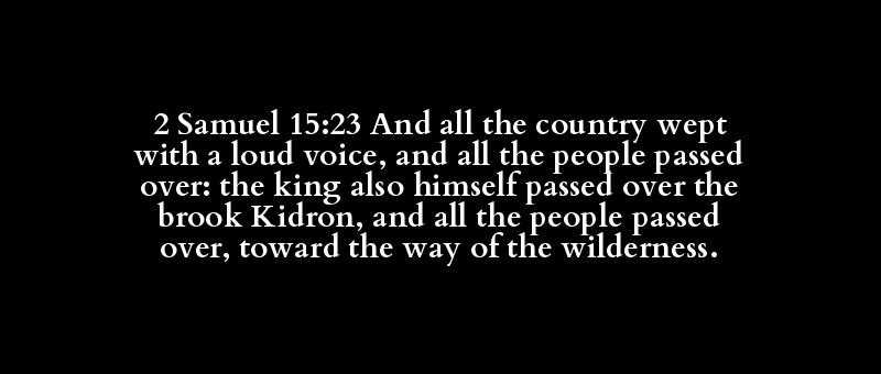 2 Samuel 15:23 And all the country wept with a loud voice, and all the people passed over: the king also himself passed over the brook Kidron, and all the people passed over, toward the way of the wilderness.