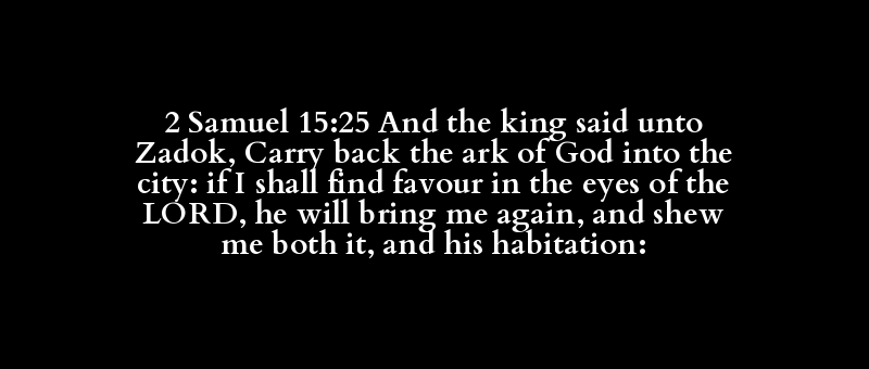 2 Samuel 15:25 And the king said unto Zadok, Carry back the ark of God into the city: if I shall find favour in the eyes of the LORD, he will bring me again, and shew me both it, and his habitation: