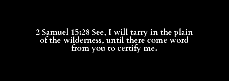 2 Samuel 15:28 See, I will tarry in the plain of the wilderness, until there come word from you to certify me.