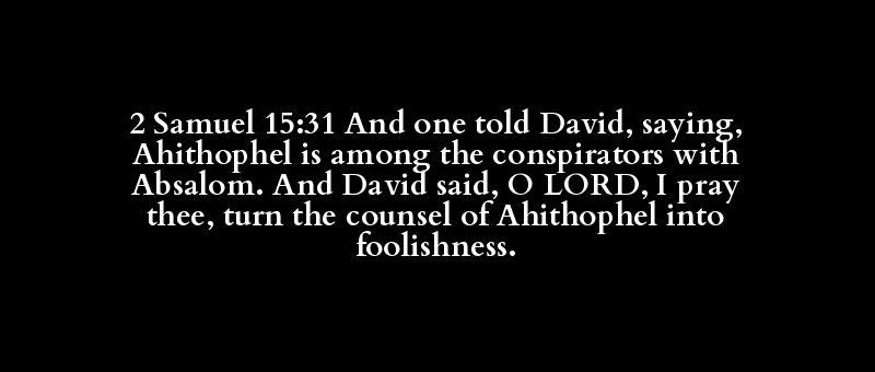 2 Samuel 15:31 And one told David, saying, Ahithophel is among the conspirators with Absalom. And David said, O LORD, I pray thee, turn the counsel of Ahithophel into foolishness.
