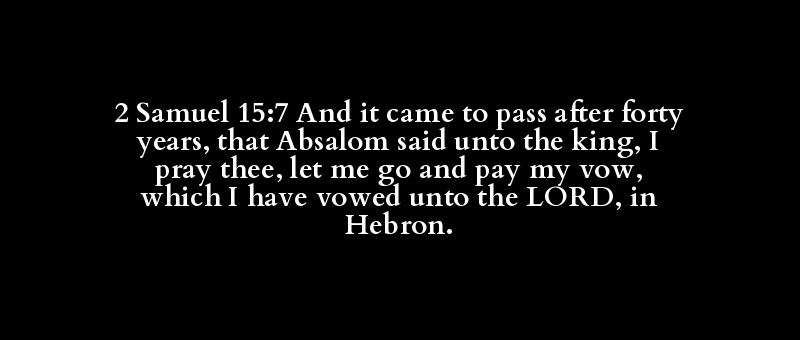 2 Samuel 15:7 And it came to pass after forty years, that Absalom said unto the king, I pray thee, let me go and pay my vow, which I have vowed unto the LORD, in Hebron.