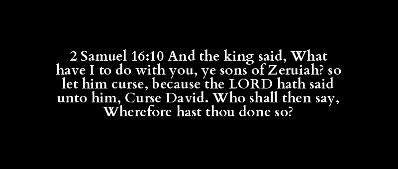 2 Samuel 16:10 And the king said, What have I to do with you, ye sons of Zeruiah? so let him curse, because the LORD hath said unto him, Curse David. Who shall then say, Wherefore hast thou done so?