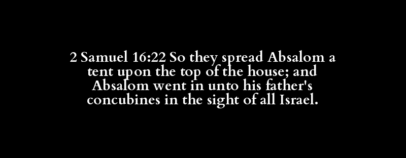 2 Samuel 16:22 So they spread Absalom a tent upon the top of the house; and Absalom went in unto his father's concubines in the sight of all Israel.