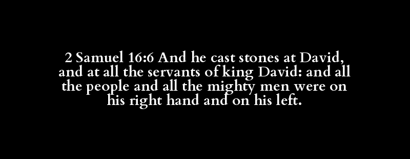 2 Samuel 16:6 And he cast stones at David, and at all the servants of king David: and all the people and all the mighty men were on his right hand and on his left.