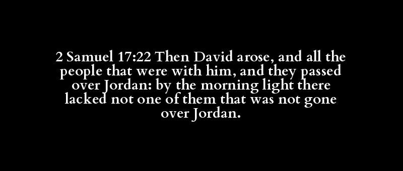 2 Samuel 17:22 Then David arose, and all the people that were with him, and they passed over Jordan: by the morning light there lacked not one of them that was not gone over Jordan.