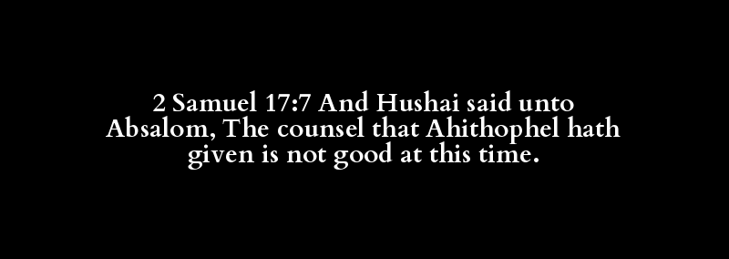 2 Samuel 17:7 And Hushai said unto Absalom, The counsel that Ahithophel hath given is not good at this time.