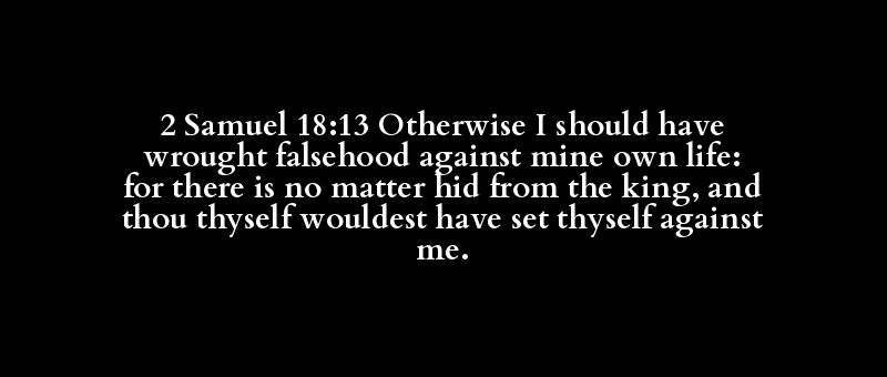 2 Samuel 18:13 Otherwise I should have wrought falsehood against mine own life: for there is no matter hid from the king, and thou thyself wouldest have set thyself against me.