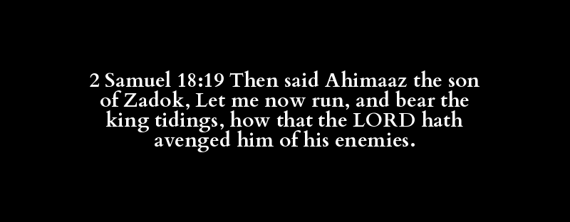 2 Samuel 18:19 Then said Ahimaaz the son of Zadok, Let me now run, and bear the king tidings, how that the LORD hath avenged him of his enemies.