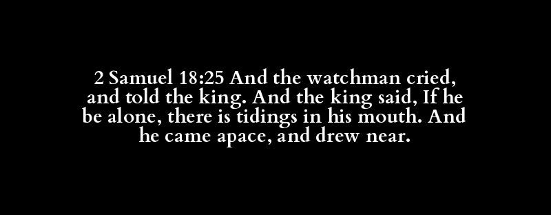 2 Samuel 18:25 And the watchman cried, and told the king. And the king said, If he be alone, there is tidings in his mouth. And he came apace, and drew near.