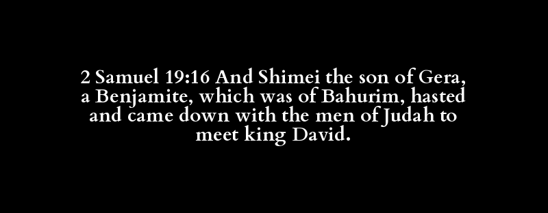 2 Samuel 19:16 And Shimei the son of Gera, a Benjamite, which was of Bahurim, hasted and came down with the men of Judah to meet king David.