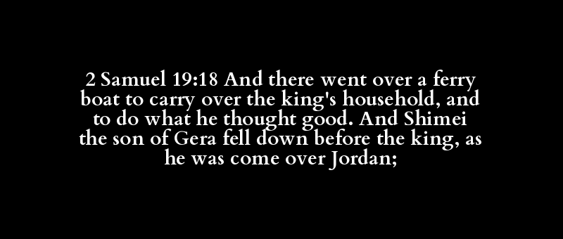 2 Samuel 19:18 And there went over a ferry boat to carry over the king's household, and to do what he thought good. And Shimei the son of Gera fell down before the king, as he was come over Jordan;