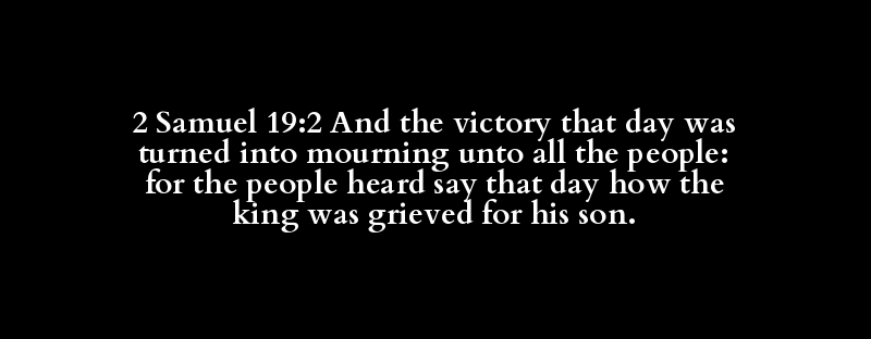 2 Samuel 19:2 And the victory that day was turned into mourning unto all the people: for the people heard say that day how the king was grieved for his son.