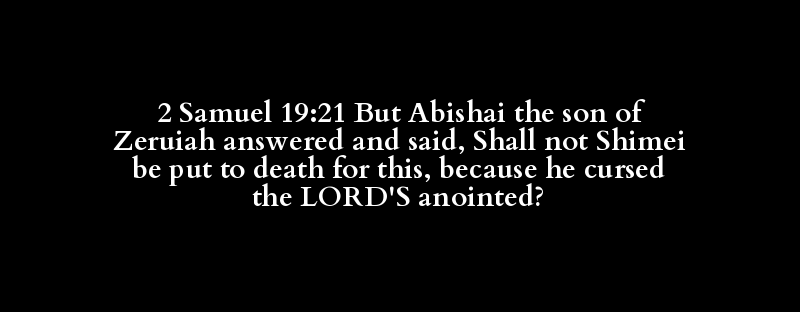 2 Samuel 19:21 But Abishai the son of Zeruiah answered and said, Shall not Shimei be put to death for this, because he cursed the LORD'S anointed?