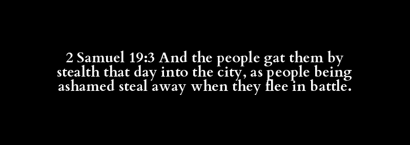 2 Samuel 19:3 And the people gat them by stealth that day into the city, as people being ashamed steal away when they flee in battle.