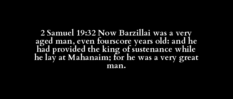 2 Samuel 19:32 Now Barzillai was a very aged man, even fourscore years old: and he had provided the king of sustenance while he lay at Mahanaim; for he was a very great man.