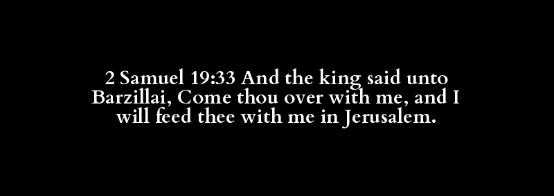 2 Samuel 19:33 And the king said unto Barzillai, Come thou over with me, and I will feed thee with me in Jerusalem.