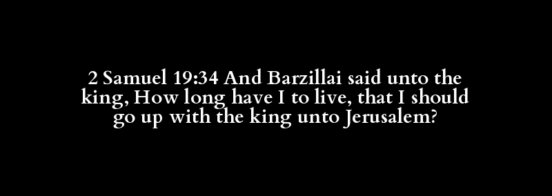 2 Samuel 19:34 And Barzillai said unto the king, How long have I to live, that I should go up with the king unto Jerusalem?
